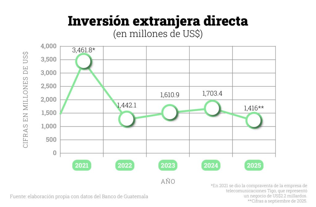 Las cifras de inversión extranjera aún no están confirmadas a diciembre, pero analizando lo registrado hasta septiembre y las expectativas de cierre del Banguat (US$1,875 millones), todo parece indicar que habrá un leve crecimiento con respecto al año anterior.
