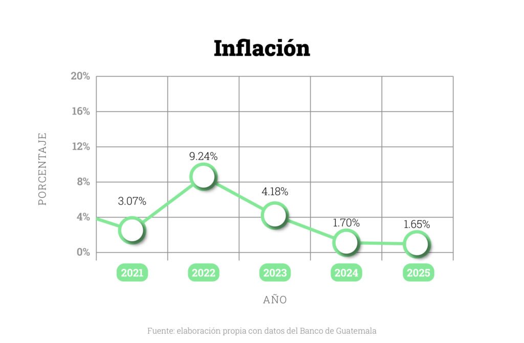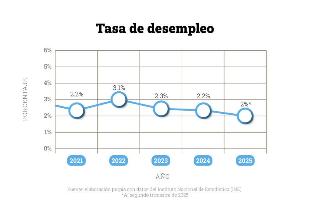 La inflación cerró 2025 en 1.65%, cifra similar a la registrada en 2024. Es importante recordar que, desde enero de 2024, el Instituto Nacional de Estadística (INE) utiliza una nueva metodología para calcular el Índice de Precios al Consumo (IPC). Esta ha sido cuestionada por algunos expertos, especialmente porque existe una percepción entre la población de que el costo de vida ha incrementado más de lo que dicen los números.