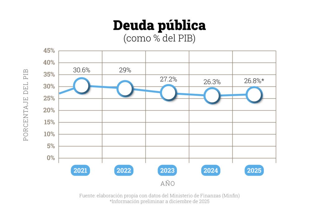 En la primera, Guatemala tiene suficiente holgura, ya que se sitúa en 26.8%. Incluso instituciones como el Fondo Monetario Internacional (FMI) han afirmado que el país todavía tiene espacio para endeudarse, siempre que esos fondos sean utilizados para inversión.