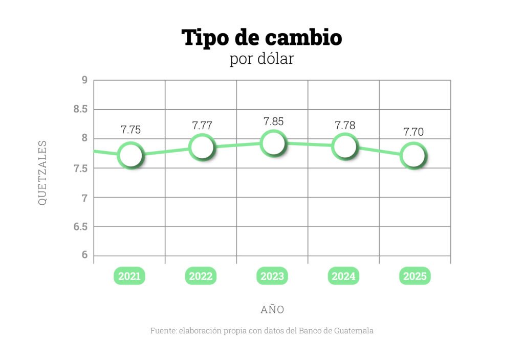 Desde 2023, donde se registró una muy pequeña apreciación, el Quetzal ha sufrido una muy leve depreciación, pero dentro de la estabilidad que le ha acompañado en los últimos años. En esta realidad influye la Regla de participación del Banguat, que fue ajustada en diciembre de 2025. Este es un mecanismo que se activa cuando el tipo de cambio fluctúa más allá de unos parámetros establecidos. Ahí el banco central interviene comprando o vendiendo divisas, para mantener la estabilidad de la moneda.